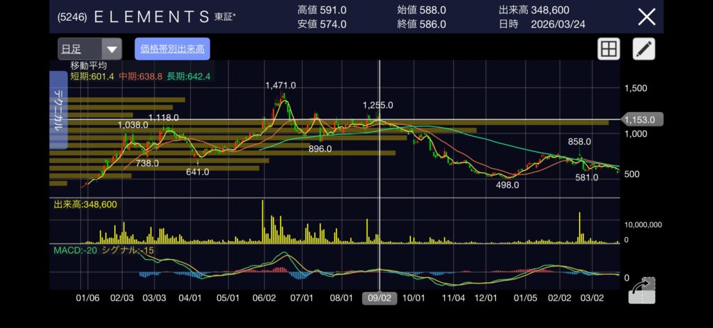 (5246) ELEMENTSで1,157円の高値掴み。含み損50%から学ぶ「損切り」の勇気と再起の戦略