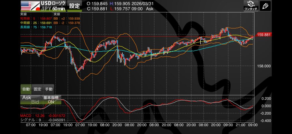 | エントリー条件 | 160.00を実体で明確に上抜け + MACDゴールデンクロス |